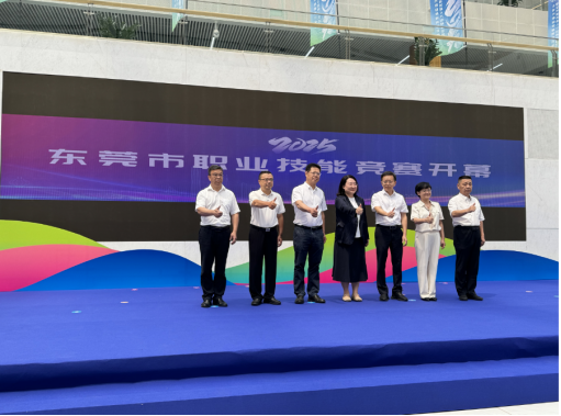 7月15日,2025年东莞市职业技能竞赛开幕式暨全市高技能人才培育交流活动在东莞市民服务中心举行。本次活动由东莞市人力资源和社会保障局、东莞市总工会主办,东莞市科学技术局、东莞市城市管理和综合执法局、东莞市卫生健康局、东莞市教育局、东莞职业技术学院协办。我校党委委员、党委宣传部部长杨洋受邀出席并参与启动仪式。