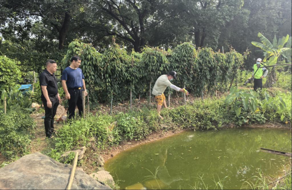 26日下午,工作联队首先对元岭村重点区域进行走访调研,实地查看居民区、幼儿园、文化广场及村道周边情况,现场清理盆罐积水,排查蚊虫孳生死角。在闲置建设用地处,联队现场办公,迅速制定了包含烟雾灭蚊、水潭抽排、药物灭卵等在内的综合防控方案,明确重点区域与职责分工。