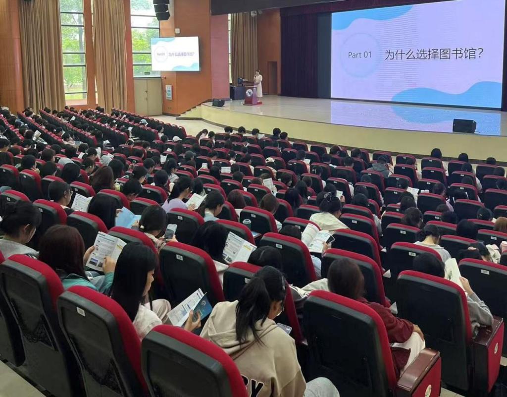 培训以“爱上图书馆”为主题,现场为每位新生发放《读者手册》,内容围绕“为什么选择图书馆、如何玩转图书馆、有问题速解决、阅读真的很重要”四个模块展开。图书馆老师通过“讲解+微视频+现场演示+互动问答”相结合的方式,生动而系统地介绍了图书馆的宝藏资源和使用攻略,涵盖馆藏资源、服务项目、图书借还、数字资源使用等内容。同时,还以“为什么读书”“读什么书”为切入点,分享阅读对深化专业学习、拓展知识结构、提升综合素养的重要意义,引导新生重视阅读,爱上阅读,善用图书馆。