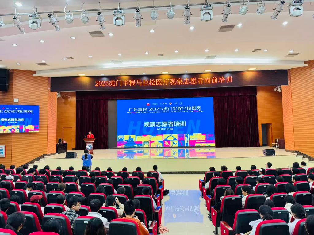 11月23日,2025虎门半程马拉松在我市虎门镇热烈开幕,来自全国各地的9000名跑者共同奔赴这场充满激情与挑战的体育盛宴,我校卫生健康学院共派出260名师生参与医疗观察志愿服务,覆盖全程21.0975公里,累计服务时长超2990小时,在2025虎门半程马拉松的赛道上竖起一道流动的“健康屏障”,成为赛事中最亮眼的“安全防线”。