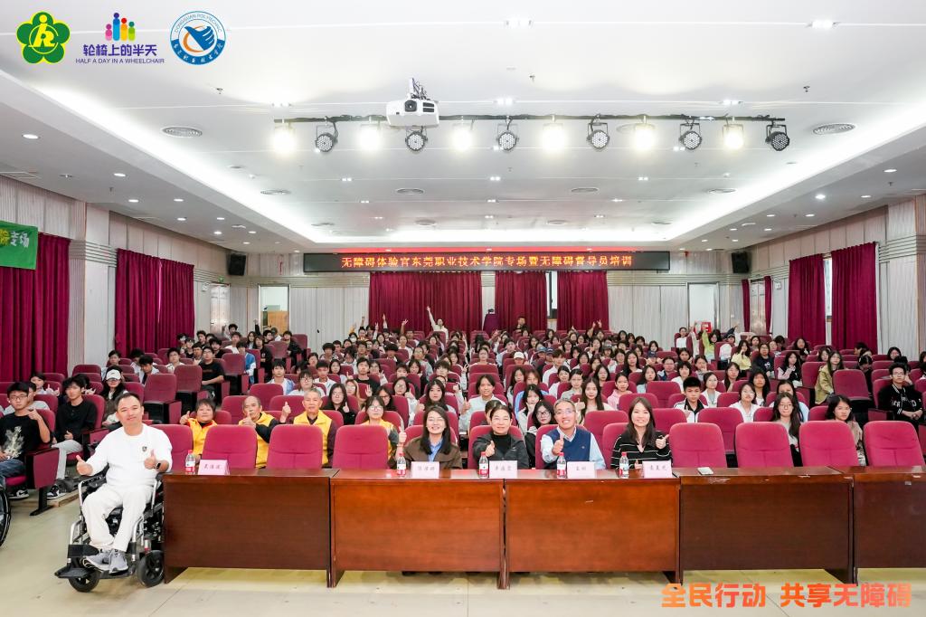 11月23日,东莞市残疾人联合会与东莞职业技术学院共同举办,由教育与体育学院(筹)社区管理与服务党小组执行的“无障碍与残障文化校园行”活动,在我校松山湖校区举行。活动邀请深圳市龙华区残联理事、残障倡导者吴浩波先生到校开展专题讲座,市残联维权部部长王刚、教育与体育学院院长辛海霞、社区管理与服务专业教师及近200名学生参加。本次活动是学校与市残联深化合作的又一次重要实践,在校园内营造了生动、真实的无障碍教育场景。