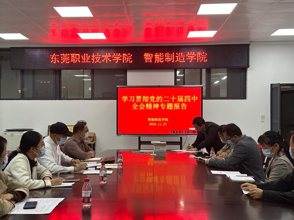 11月27日下午,智能制造学院组织全体教师开展学习贯彻党的二十届四中全会精神专题报告会。智能制造学院党总支书记李龙根教授作专题报告。