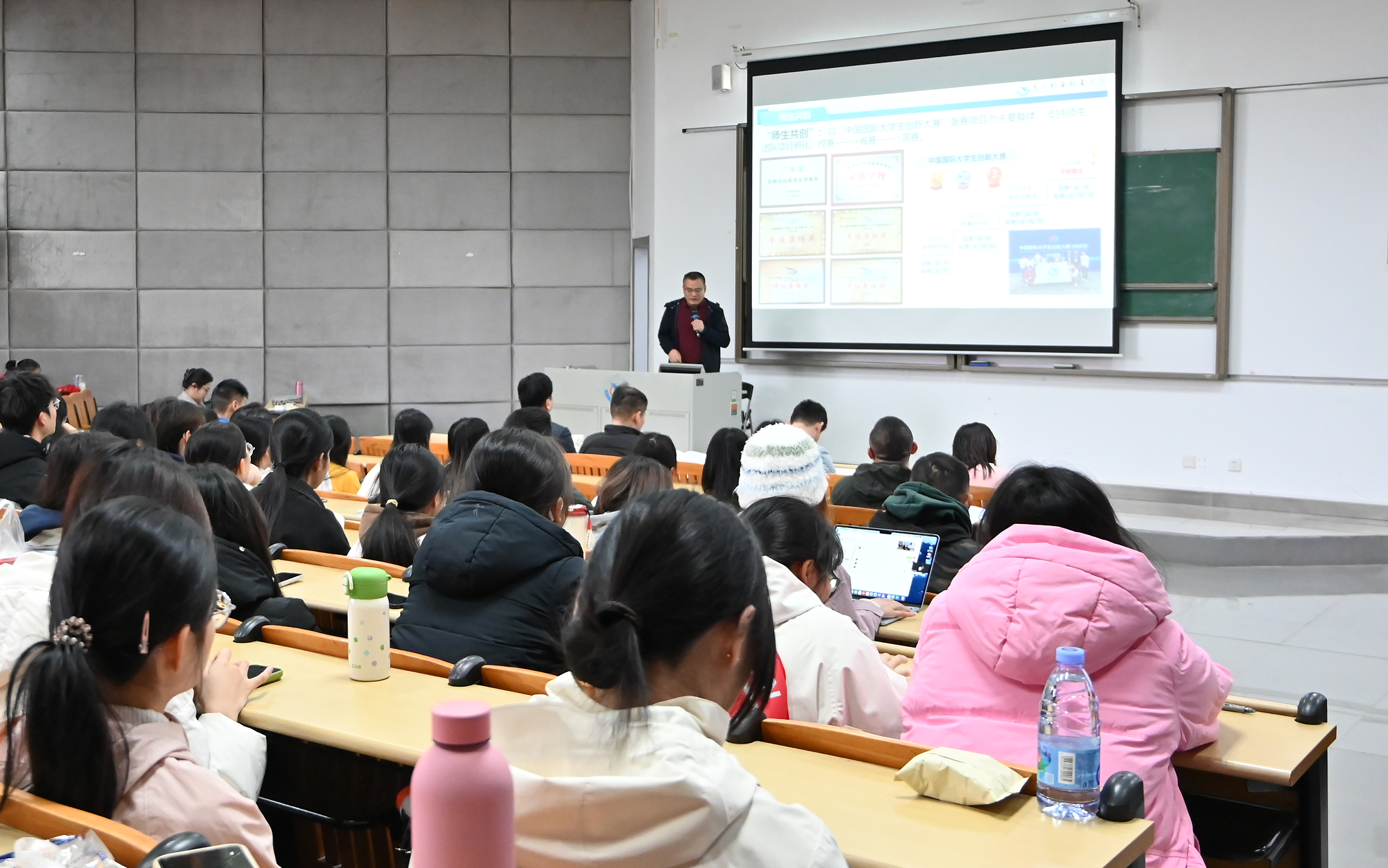 开班仪式上,李国臣教授回顾了我校双创教育历程与往届实验班取得的优异成绩,勉励新一届学员勇担使命、再创佳绩。随后,第二届实验班优秀学员代表韦俊宏分享了学习与参赛的宝贵经验。最后,曾准博士详细阐述了本次集训的系统课程设计理念,强调将构建“师生共创”的学习生态,为后续密集教学奠定了基调。