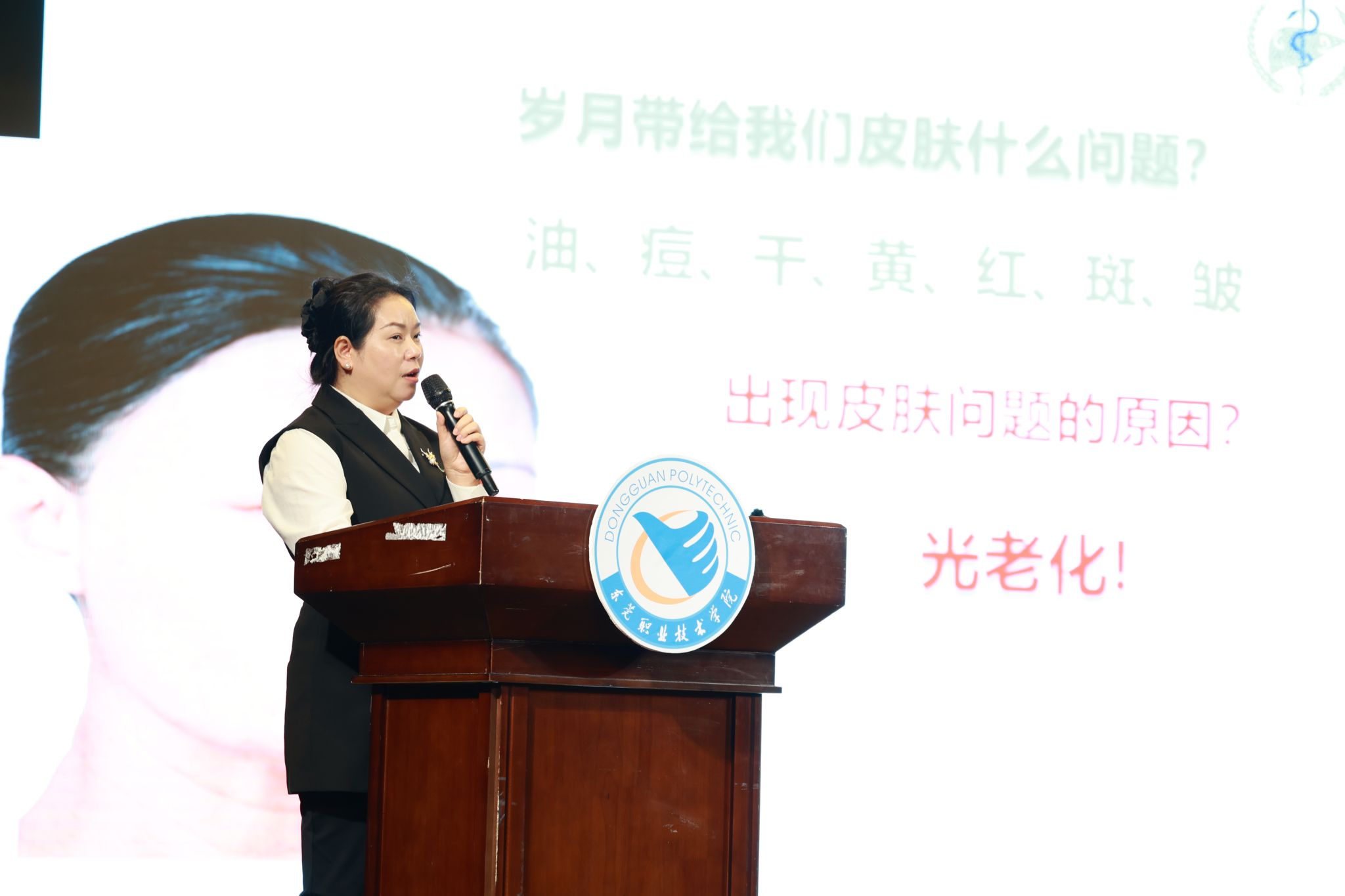 3月11日,在“青思讲堂”系列讲座中,东莞市肝胆医院冯晓辉博士以真实病例切入,生动讲解胆结石的成因与科学防治之道,并给出规律三餐、控制体重等实用建议。医学美容科护士长吴敏则直面常见护肤误区,带来了干货满满的医美“避坑”指南。讲座现场座无虚席,互动热烈,并同步进行线上直播,点赞量达3.8万次,让健康科普突破了空间限制。讲座结束后,专家团队还现场提供了义诊咨询服务,为学生答疑解惑,实现了从知识获取到健康服务的无缝衔接。