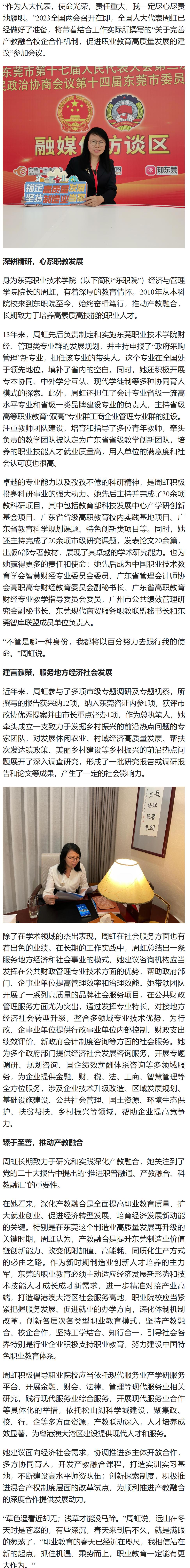 【东莞+】全国人大代表周虹:深化产教融合 推动职业教育高质量发展