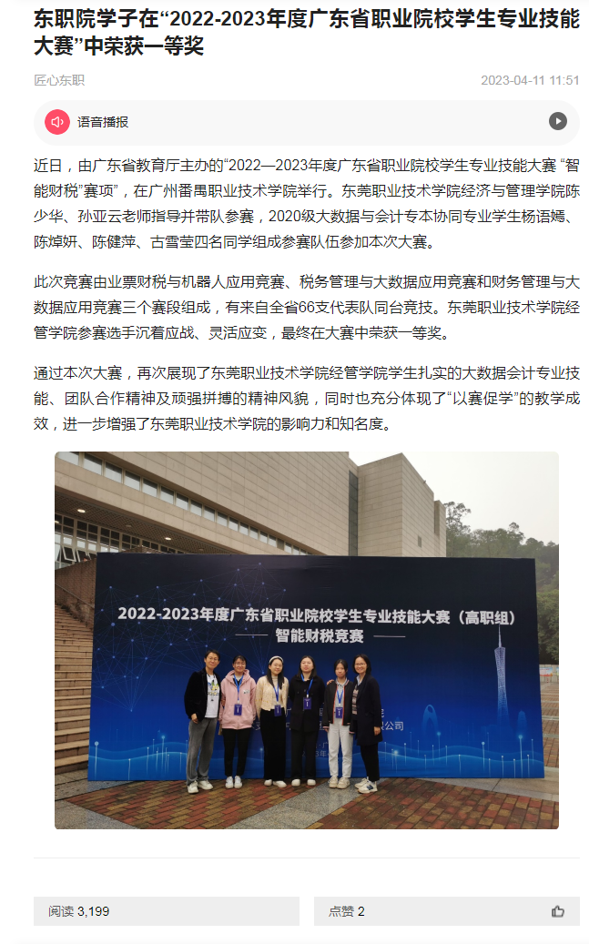 【知东莞】东职院学子在“2022-2023年度广东省职业院校学生专业技能大赛”中荣获一等奖