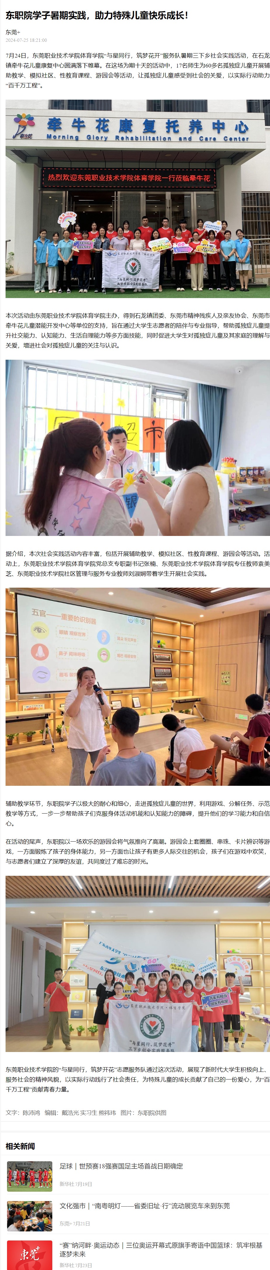 【东莞+】东职院学子暑期实践,助力特殊儿童快乐成长!