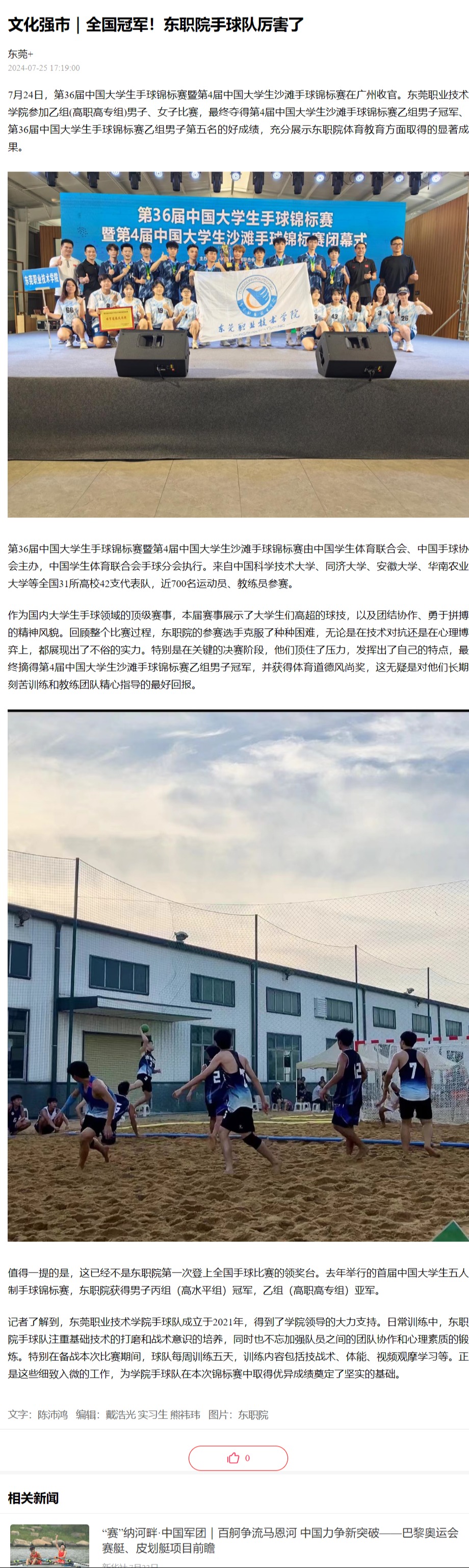【东莞+】文化强市|全国冠军!东职院手球队厉害了