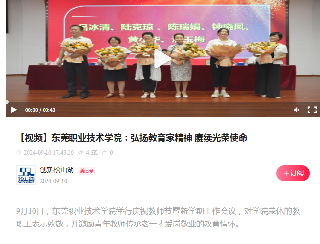 【东莞广播电视台】东莞职业技术学院:弘扬教育家精神 赓续光荣使命