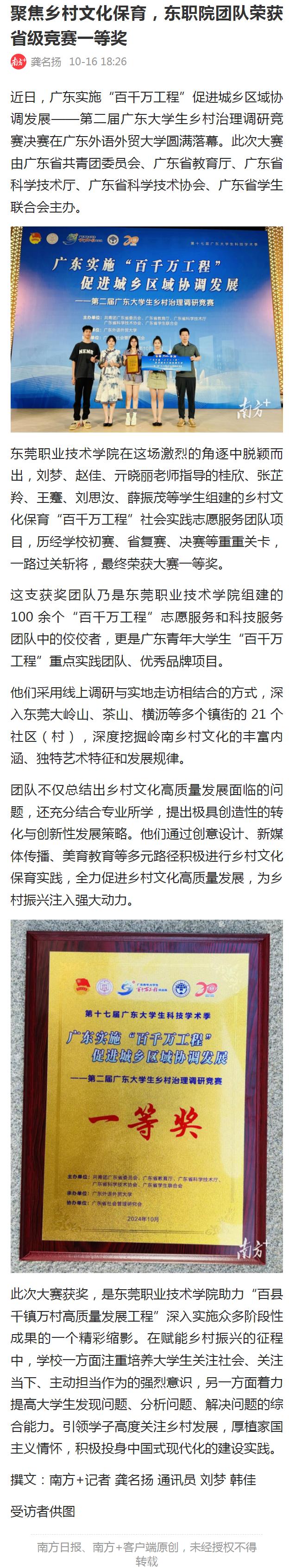 【南方+】聚焦乡村文化保育,东职院团队荣获省级竞赛一等奖