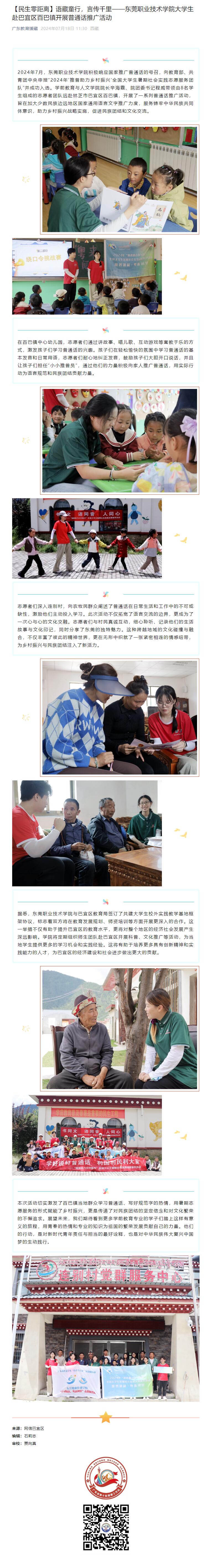 【广东教育援藏】语藏童行,言传千里——东莞职业技术学院大学生赴巴宜区百巴镇开展普通话推广活动