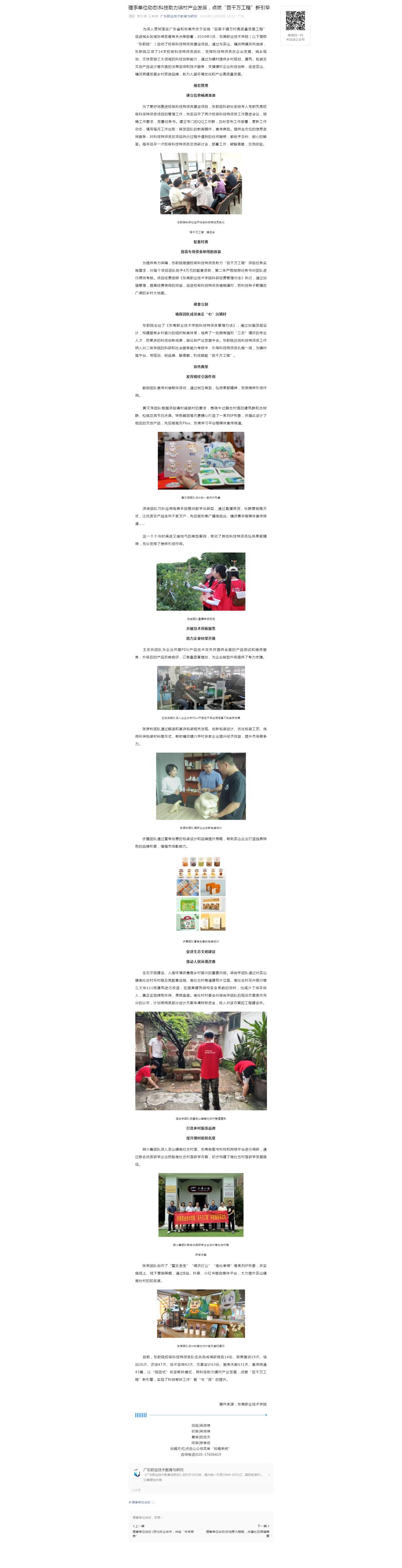 【广东职业技术教育与研究】科技助力镇村产业发展,点燃“百千万工程”新引擎