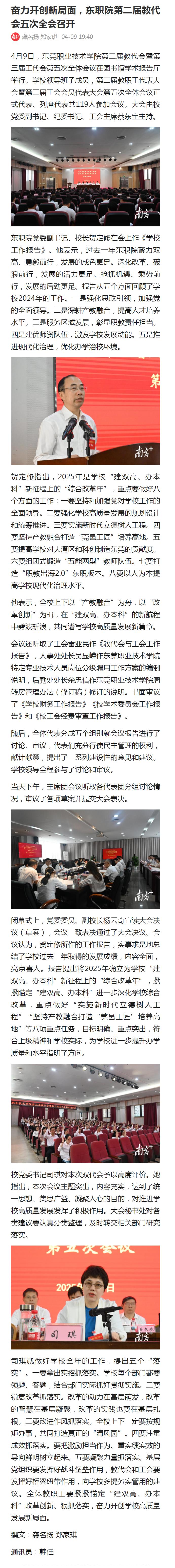 【南方+】奋力开创新局面,东职院第二届教代会五次全会召开