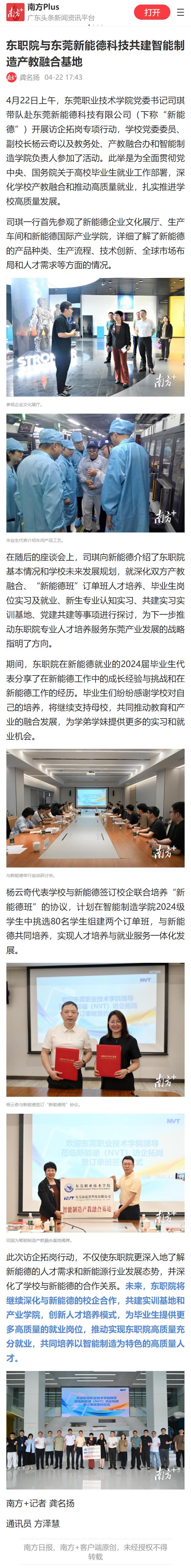 【南方+】东职院与东莞新能德科技共建智能制造产教融合基地