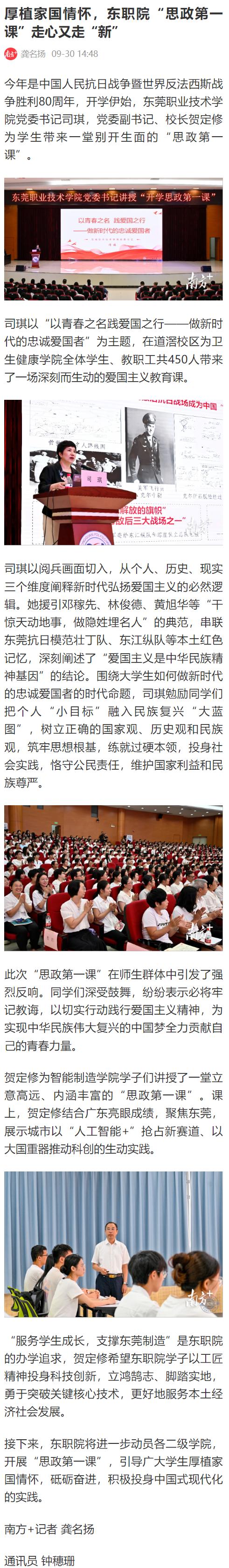 【南方+】厚植家国情怀,东职院“思政第一课”走心又走“新”
