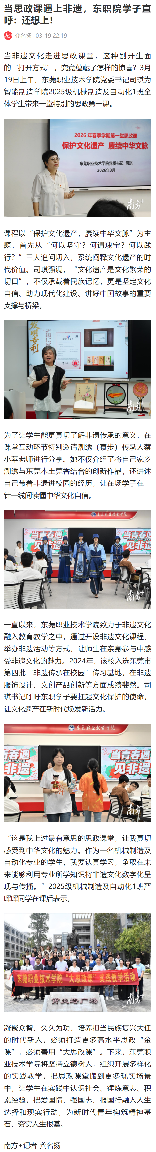 【南方+】当思政课遇上非遗,东职院学子直呼:还想上!